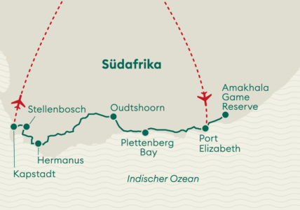 Entdecken Sie die Schönheit der Garden Route und der Weinregionen Südafrikas auf einer unvergesslichen Mietwagenreise. Geniessen Sie die beeindruckenden Landschaften, aufregende Safari-Abenteuer, hervorragende Weine und die kulturellen Schätze von Kapstadt. Jeder Abschnitt dieser Reise bietet besondere Erlebnisse und bleibende Erinnerungen.